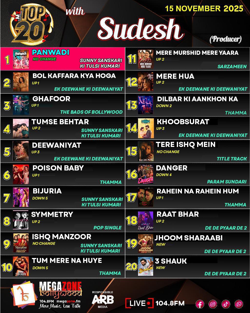 Tune in to the Megazone Bollywood Top 20 every Saturday from 4pm - 6pm to find out!