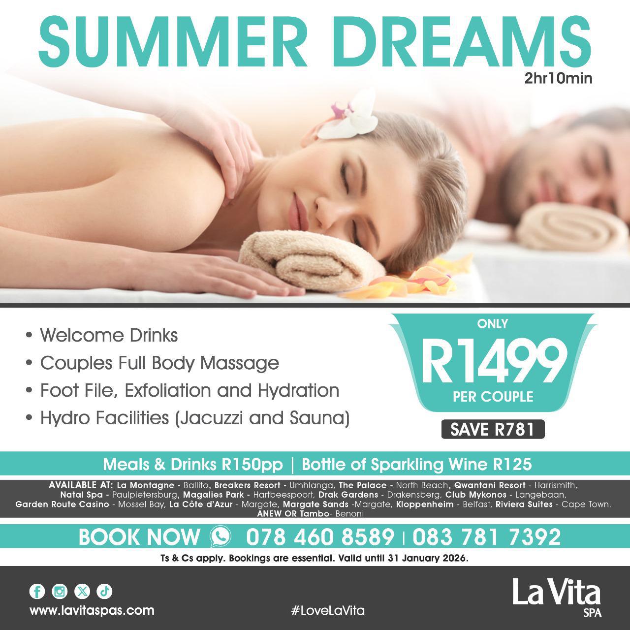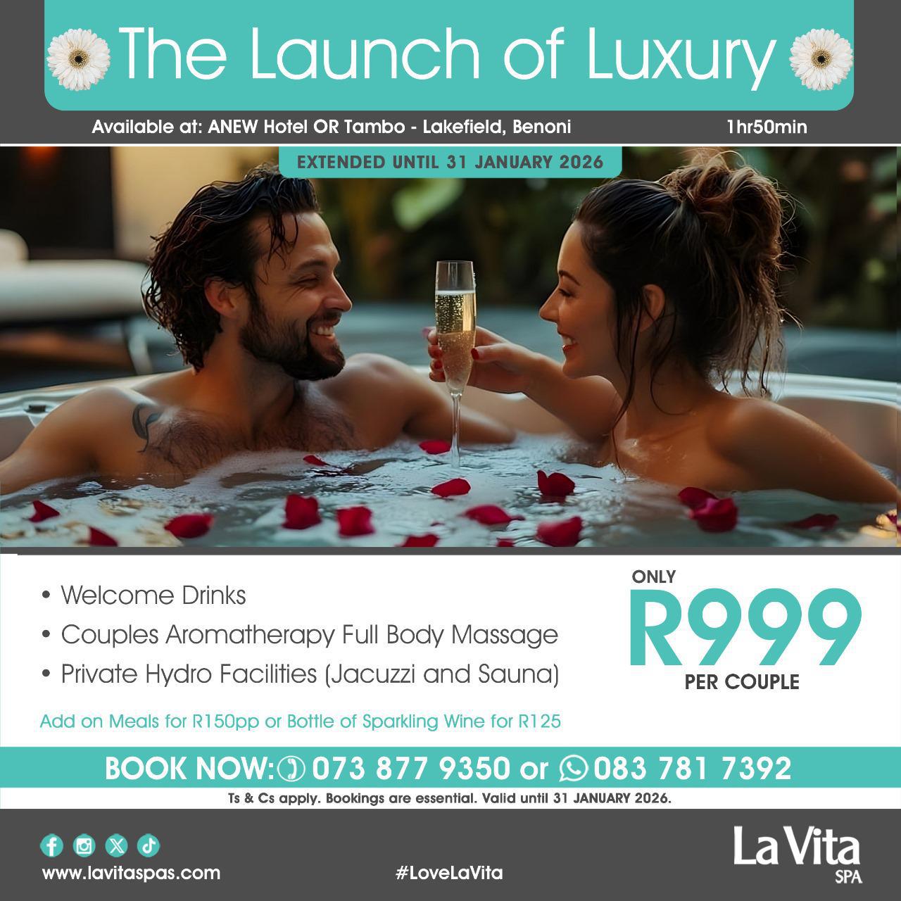Perfect for romantic getaways, solo self-care, or group spa days, La Vita Spas are a destination in themselves – where wellness, beauty, and indulgence come together.