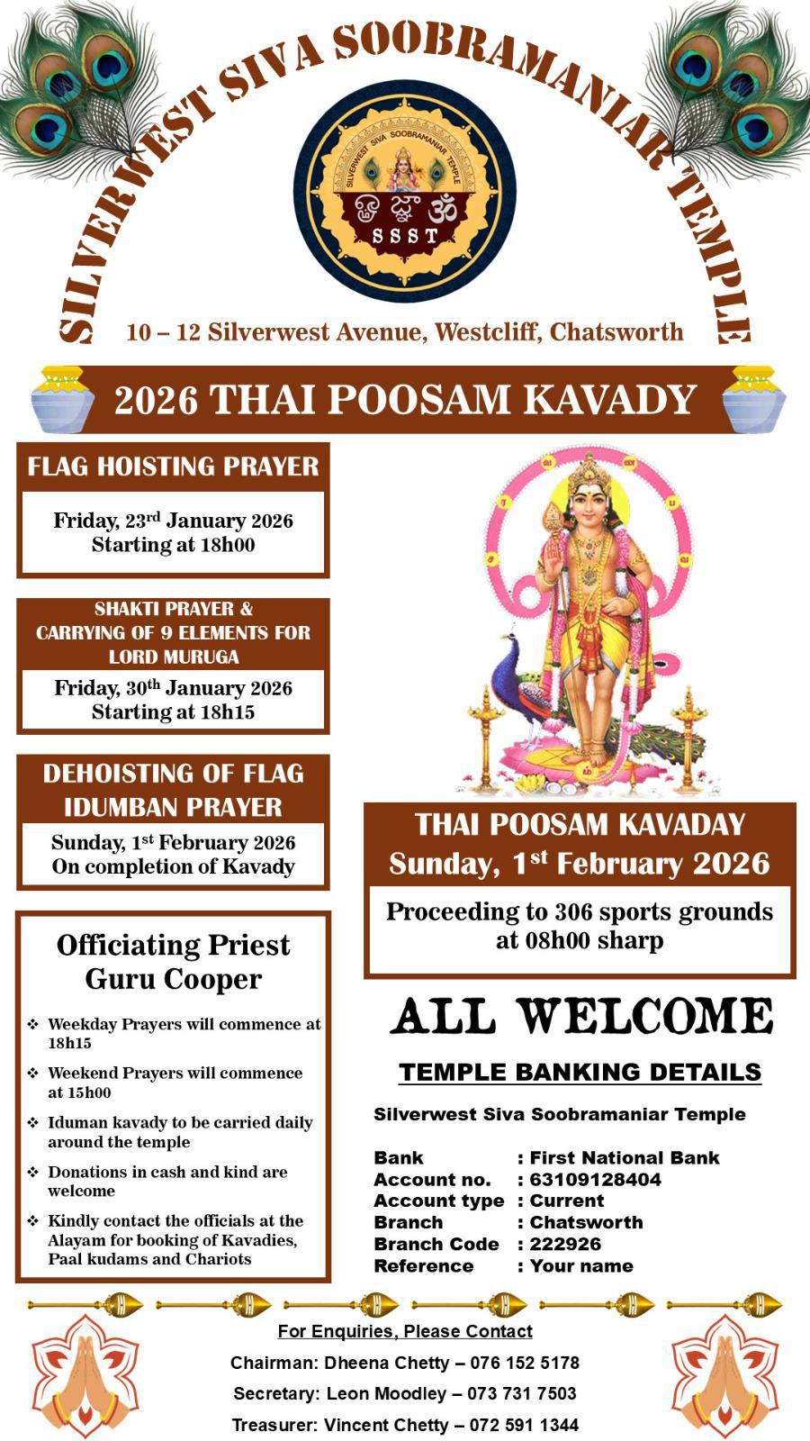 Thai Poosam Flag Hoisting is an important communal event that brings together families, elders, youth, and temple devotees. It strengthens cultural identity and ensures that sacred traditions continue to be passed down through generations.